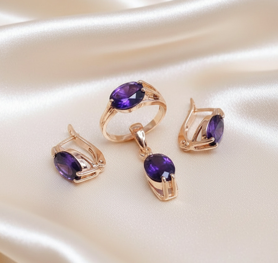 Тип комплекта: серьги + кольцо + кулон